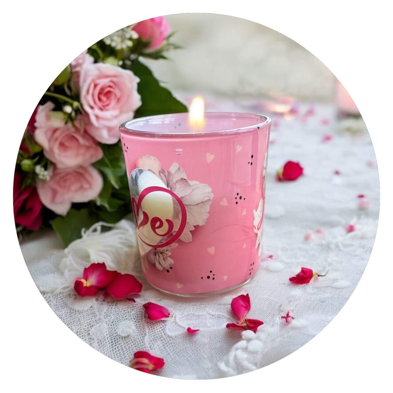 💖 *LOVE* – een woord dat warmte uitstraalt, net als de kaars zelf