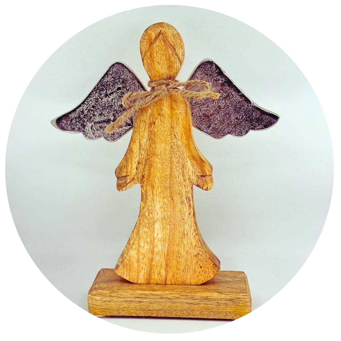 De massieve houten basis en de robuuste bouw zorgen ervoor dat de engel stevig staat, op een dressoir, vensterbank of bij een herinneringsplekje.