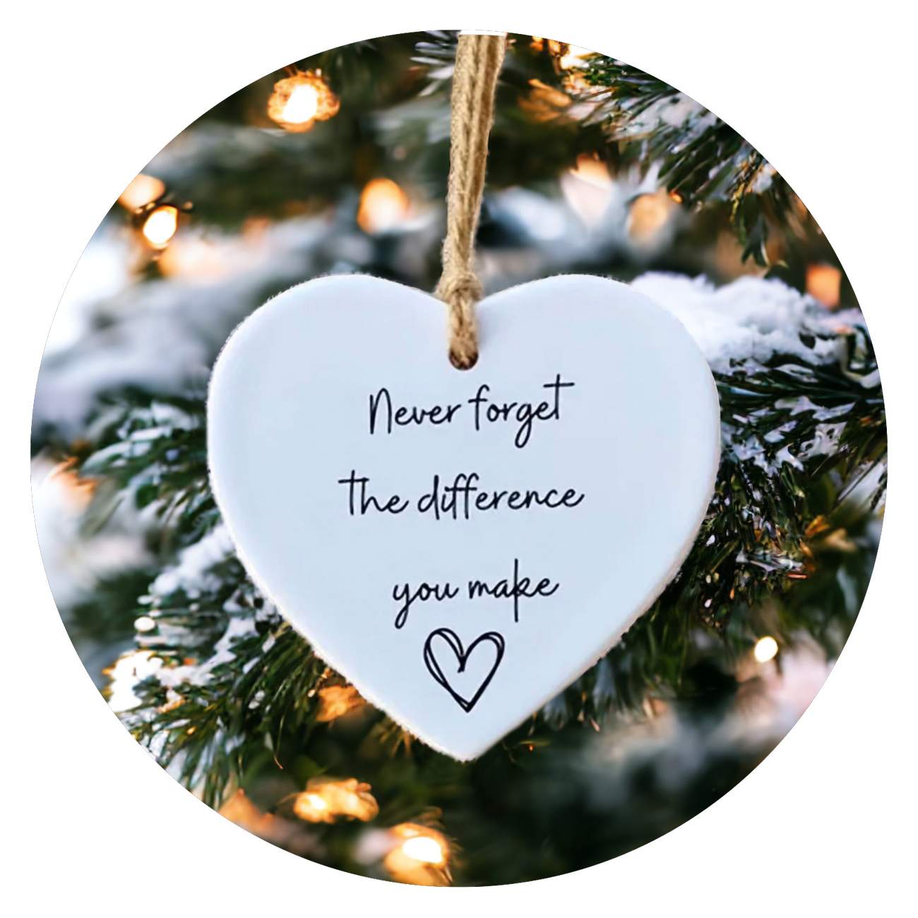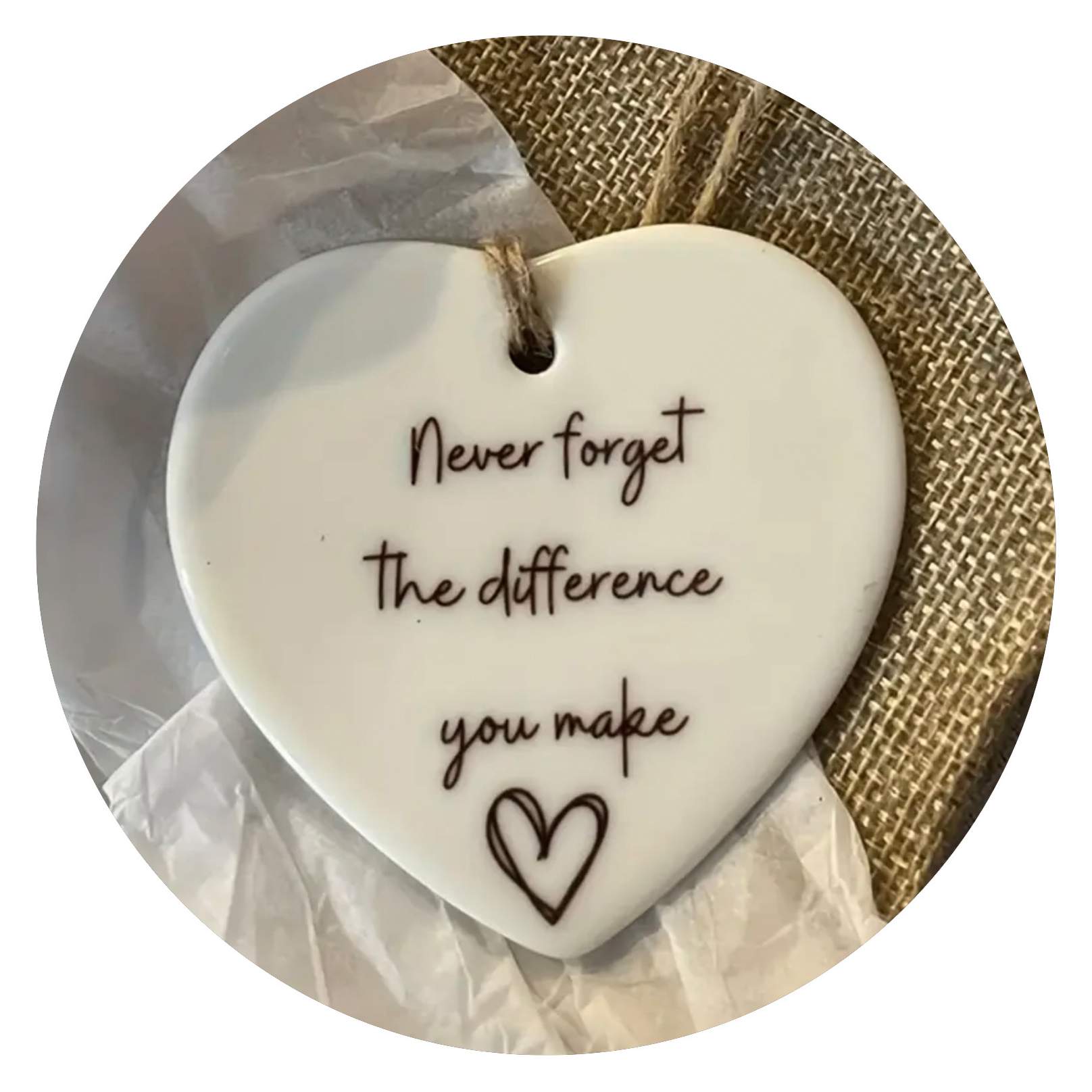 Het is een eenvoudige hanger, klein, delicaat en schattig. Maar de tekst zegt alles! Never forget the difference you make.