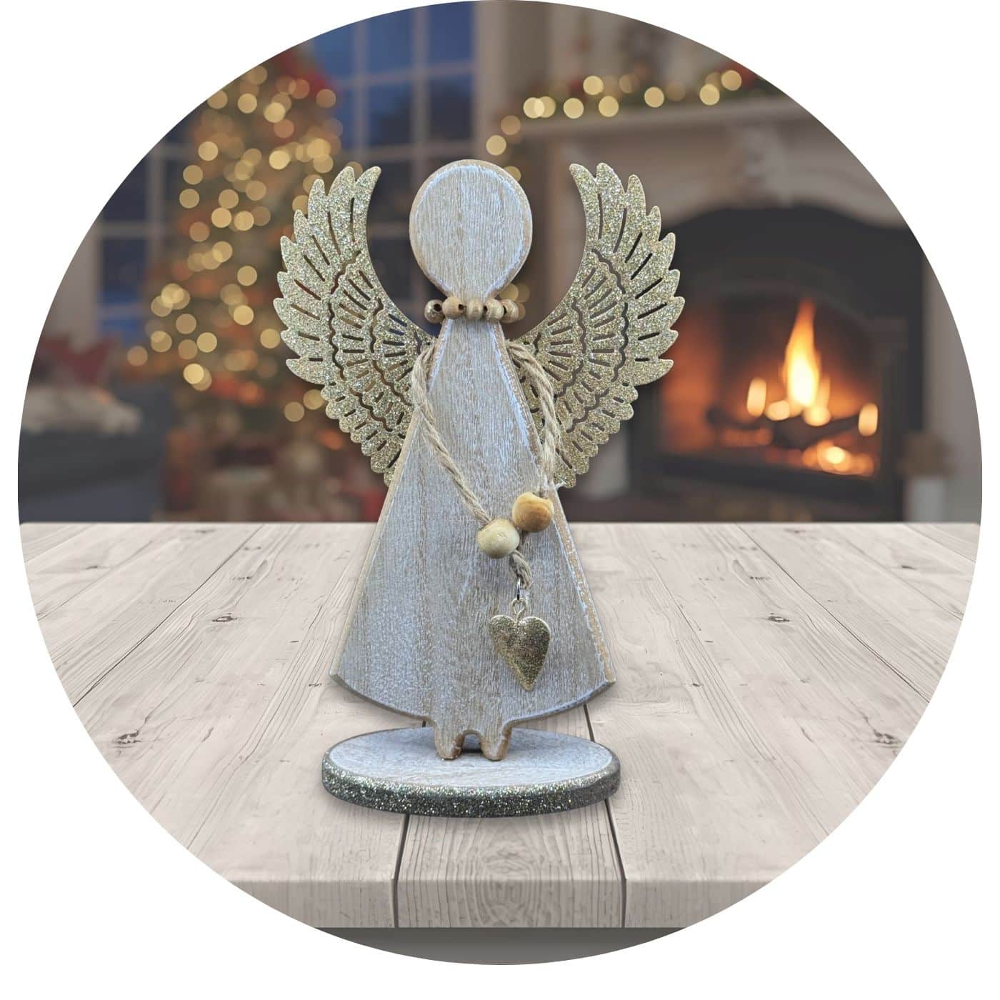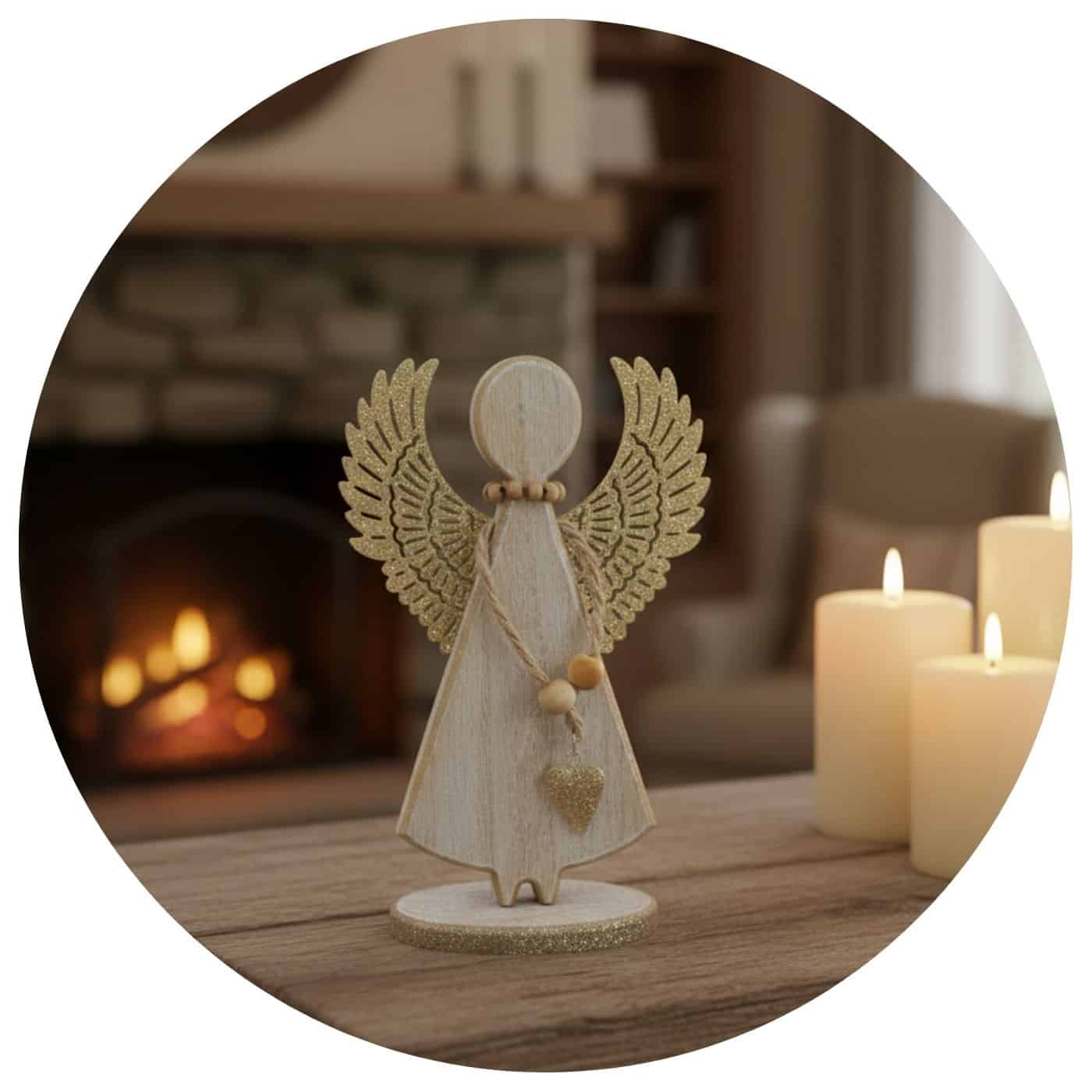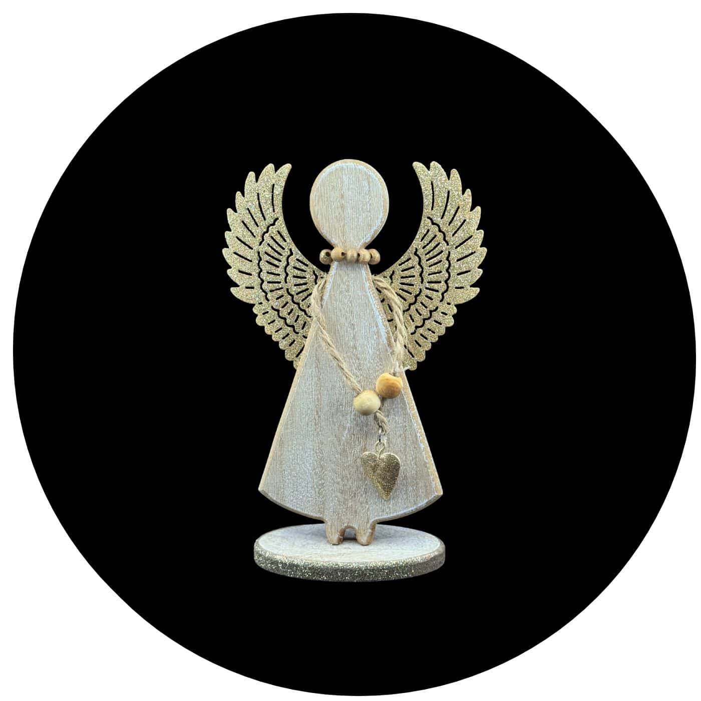 Rond de kerstdagen is deze houten engel met gouden vleugels een prachtige toevoeging aan de kerstdecoratie. Hij kan bij de kerststal staan, tussen de lichtjes op de kersttafel of op een speciaal plekje ter herinnering aan iemand die wordt gemist tijdens het kerstfeest. Zo wordt de engel een tastbaar symbool van verbondenheid, liefde en blijven denken aan.