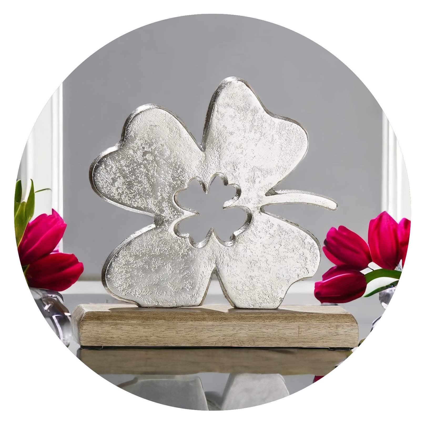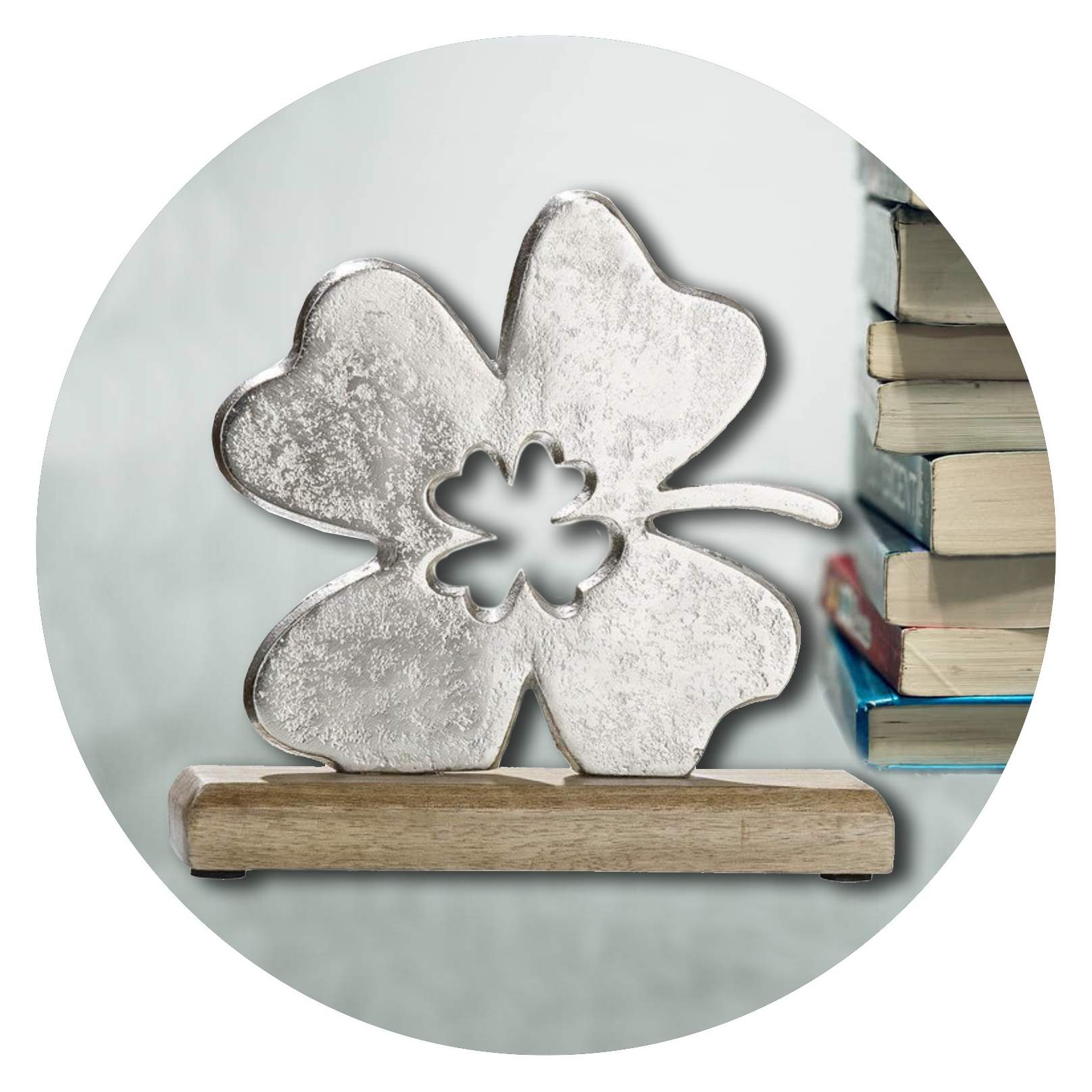 De combinatie van dit mooie hout en het allesomvattende klavertje voelt als een nieuwe kans op avontuur, op nieuw geluk, op het achter je laten van wat is geweest.