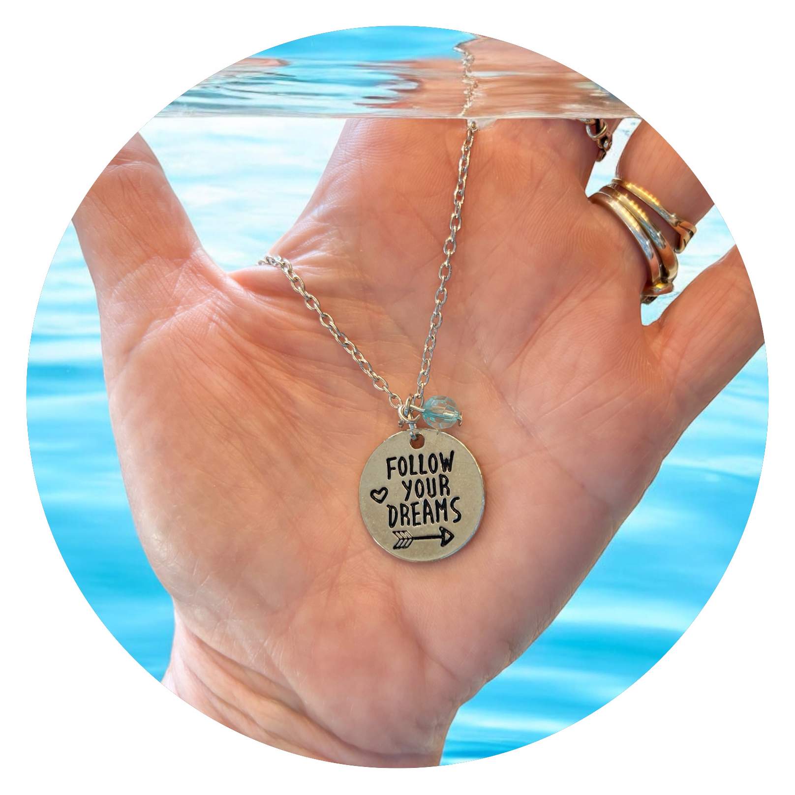 Laat je niet tegenhouden door twijfels of obstakels. De weg naar je dromen is misschien niet altijd recht, maar elke omweg en elke les brengt je dichter bij waar je hoort te zijn. Blijf dromen, blijf groeien en blijf jouw unieke pad bewandelen. Draag deze ketting als een stille belofte aan jezelf: wat je ook wilt bereiken, de kracht zit in jou. Durf te geloven, durf te doen en durf te stralen.