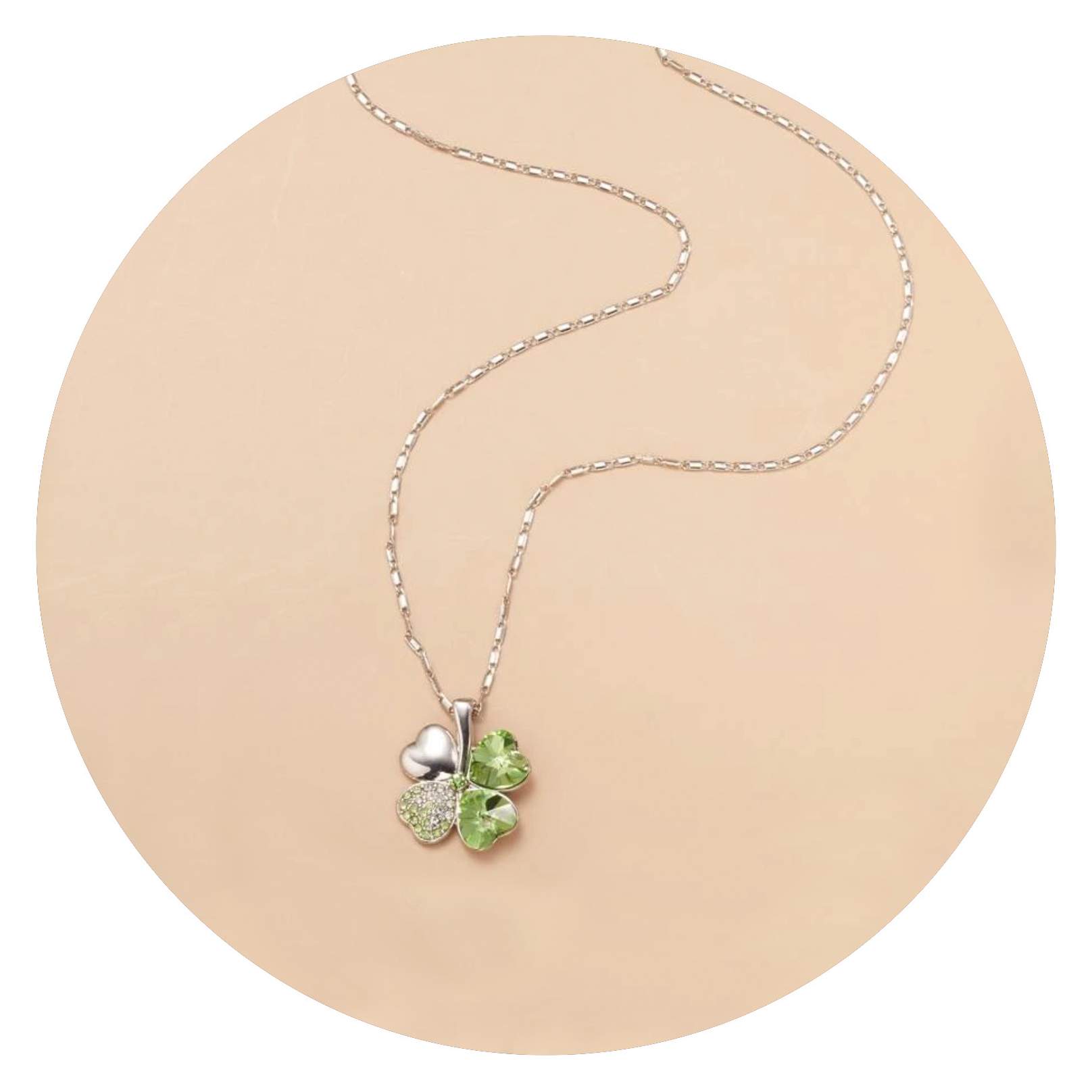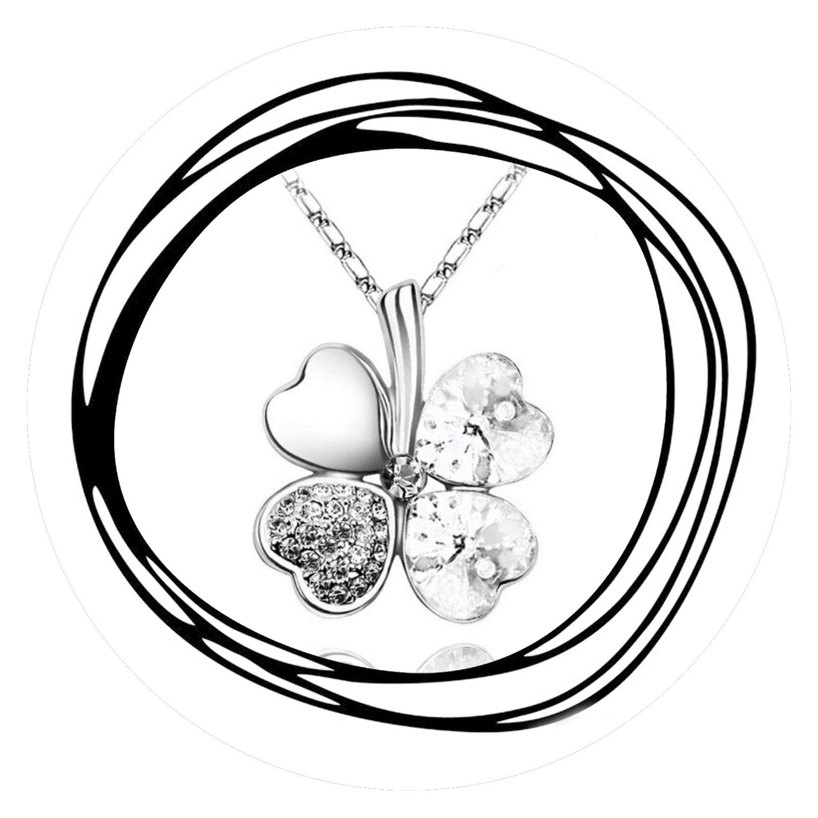 Deze ketting bevat een klavertje vier waarbij ieder blaadje prachtig is vormgegeven. Twee blaadjes hebben gekleurde schittersteentjes, één blaadje heeft kleine gekleurde en witte glaskraaltjes en het vierde blaadje is volledig zilverkleurig. Samen zijn ze een een lust voor het oog. De ketting is 40 cm lang en bestaat uit delicate schakeltjes, daarnaast bevat deze ketting een verlengkettinkje van 5 cm.
