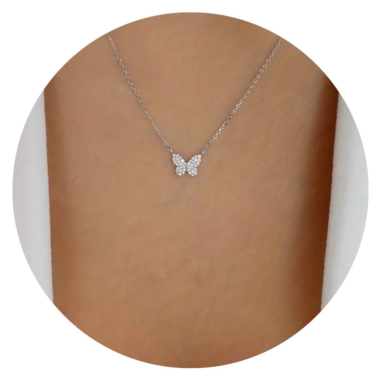 Hou je van sieraden die subtiel en toch betoverend zijn? Dit elegante kettinkje met vlindertje is precies zo’n sieraad. De fijne ketting van 40 cm lang is verkrijgbaar in zowel in de kleur zilver als goud en valt daardoor altijd mooi om de hals. Het middelpunt van deze ketting is een sierlijk vlindertje, bezet met kleine glinsterende siersteentjes die fonkelen bij iedere beweging.