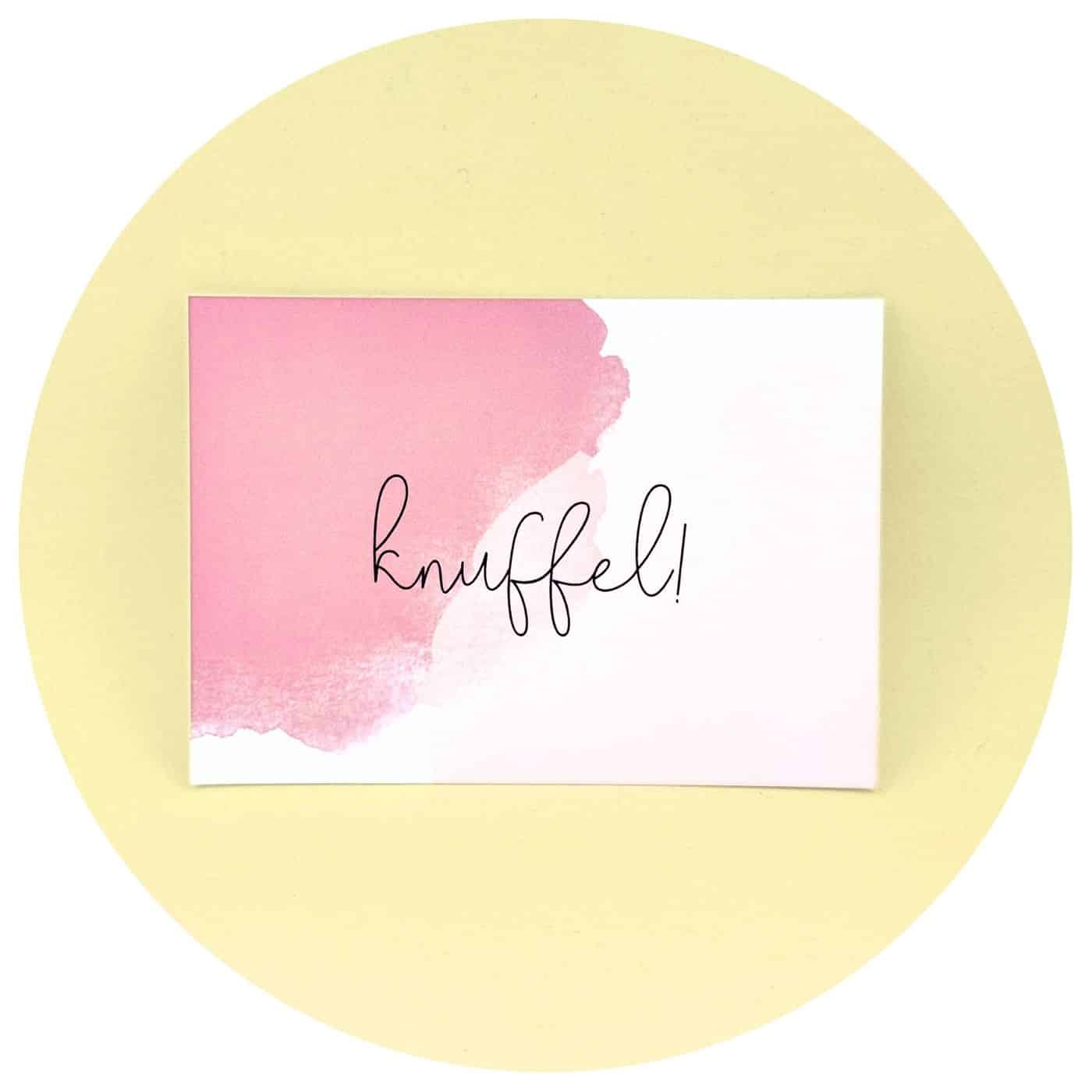 De handgeschreven tekst “knuffel!” in het midden geeft de kaart een persoonlijk en oprecht karakter. Of het nu is voor een vriendin die een zware tijd doormaakt, of gewoon om iemand te laten weten dat je er bent; deze kaart brengt de boodschap liefdevol over.