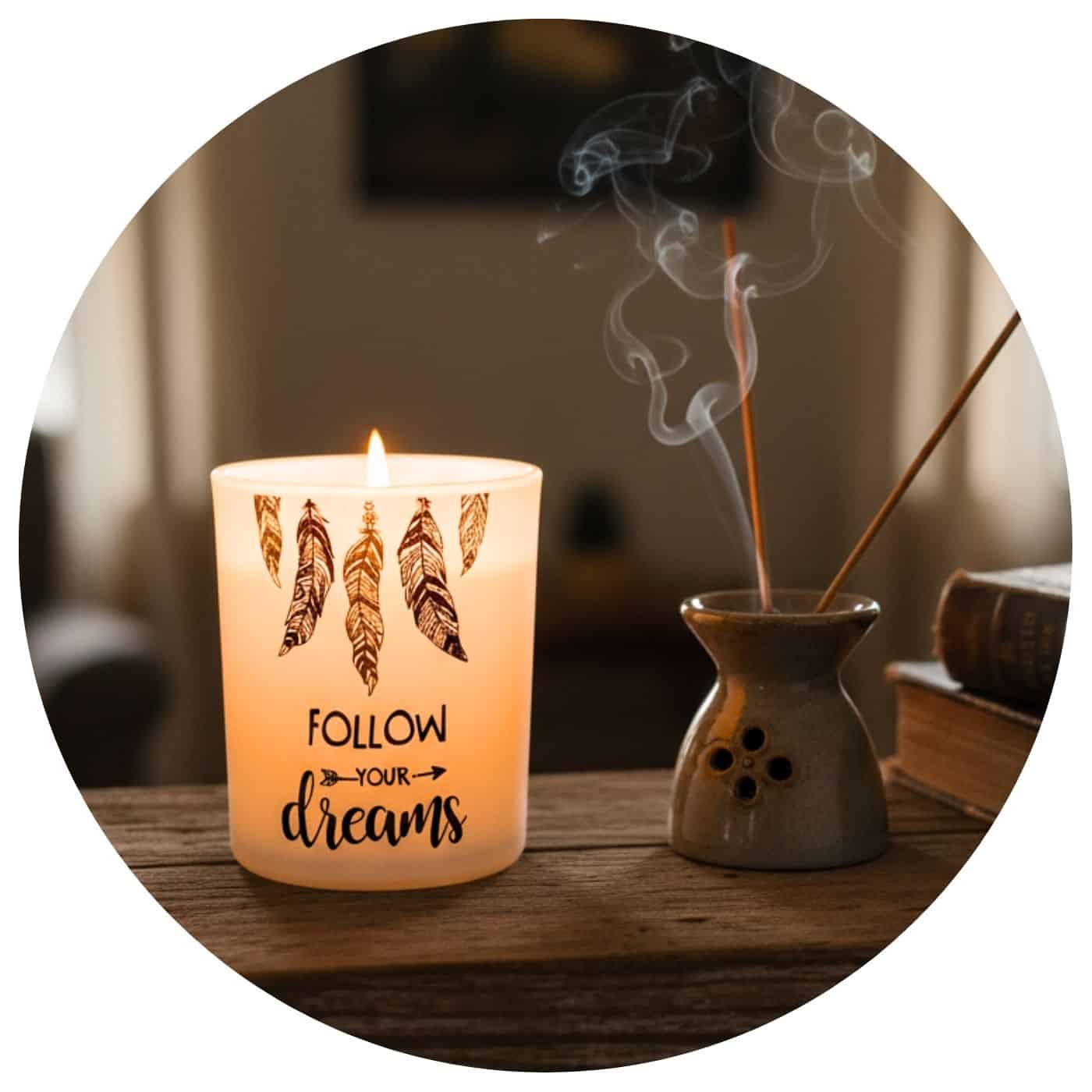 Naast de dromenvanger is er ook de inspirerende “Follow Your Dreams” uitvoering. Deze variant is gedecoreerd met twee fijne veren en een krachtige boodschap die je aanmoedigt om je hart te volgen. Waar de dromenvanger staat voor bescherming, staat deze kaars symbool voor ambitie, hoop en het waarmaken van je diepste wensen.