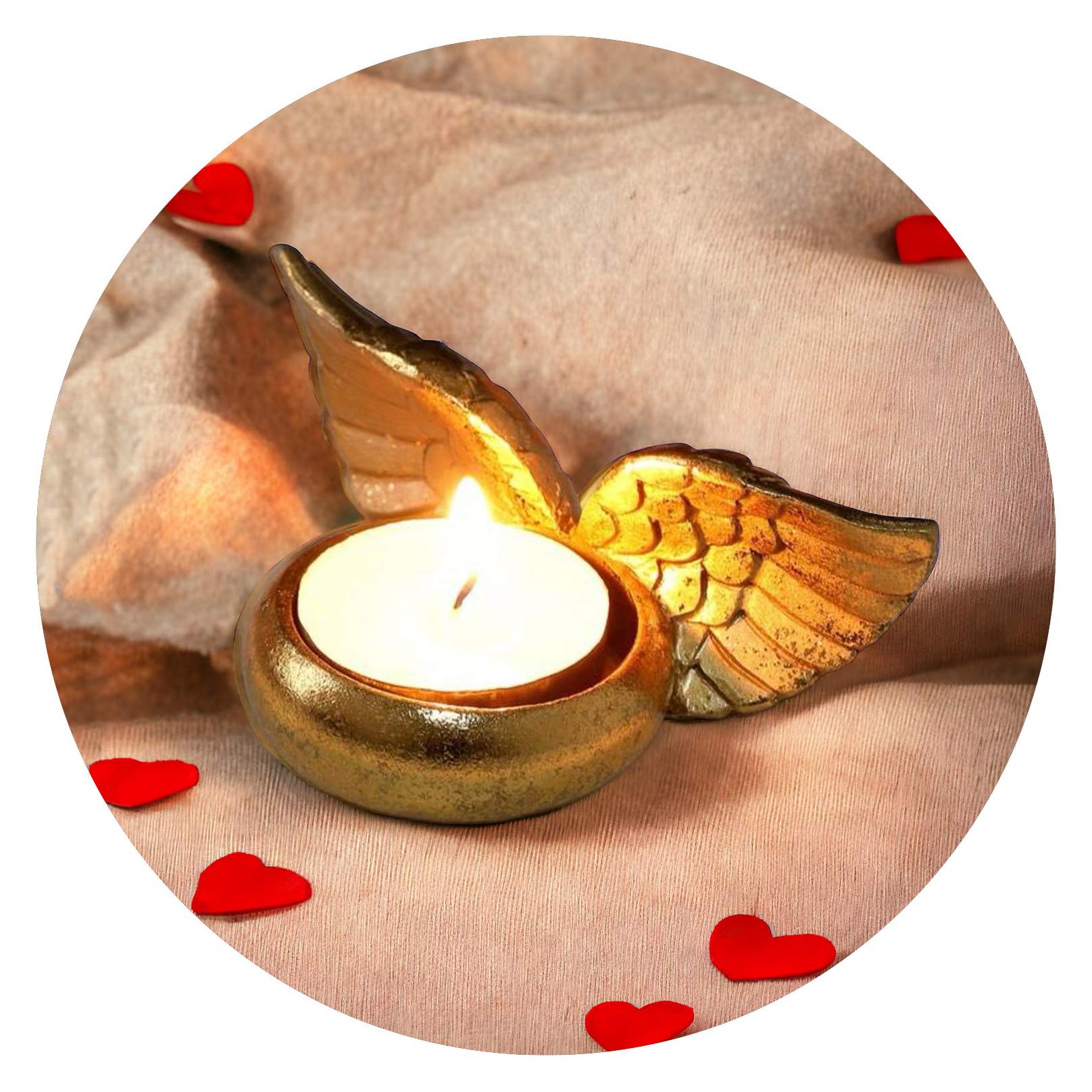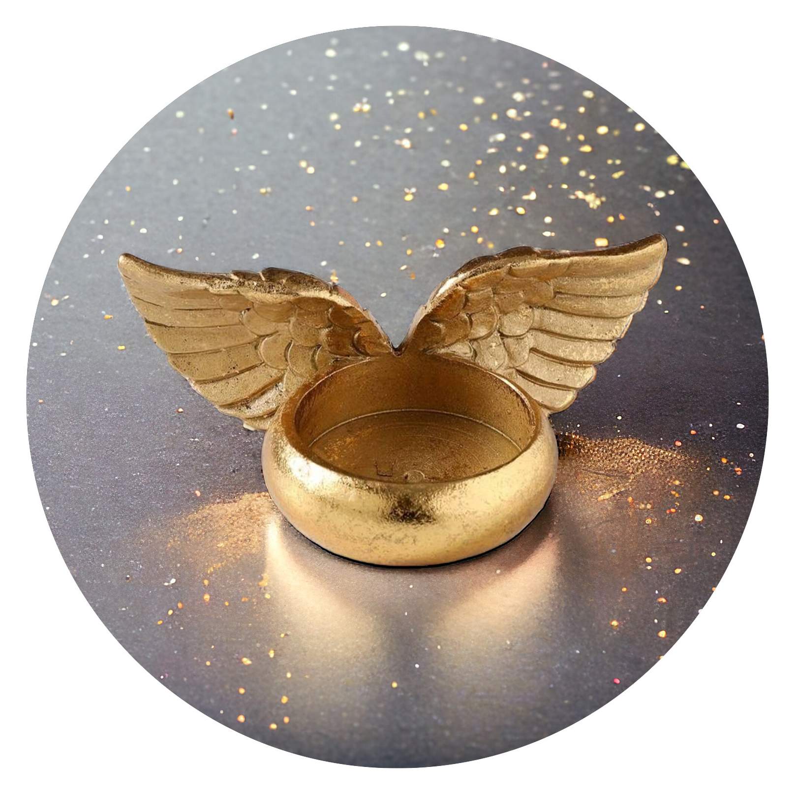 Deze waxinelichtjeshouder in goudkleur met schattige vleugels straalt pure liefde uit, vergezeld van een warme gloed vol hoop. De vleugels, subtiel uitgespreid aan de achterzijde van de houder, geven deze houder een bijna hemels tintje.