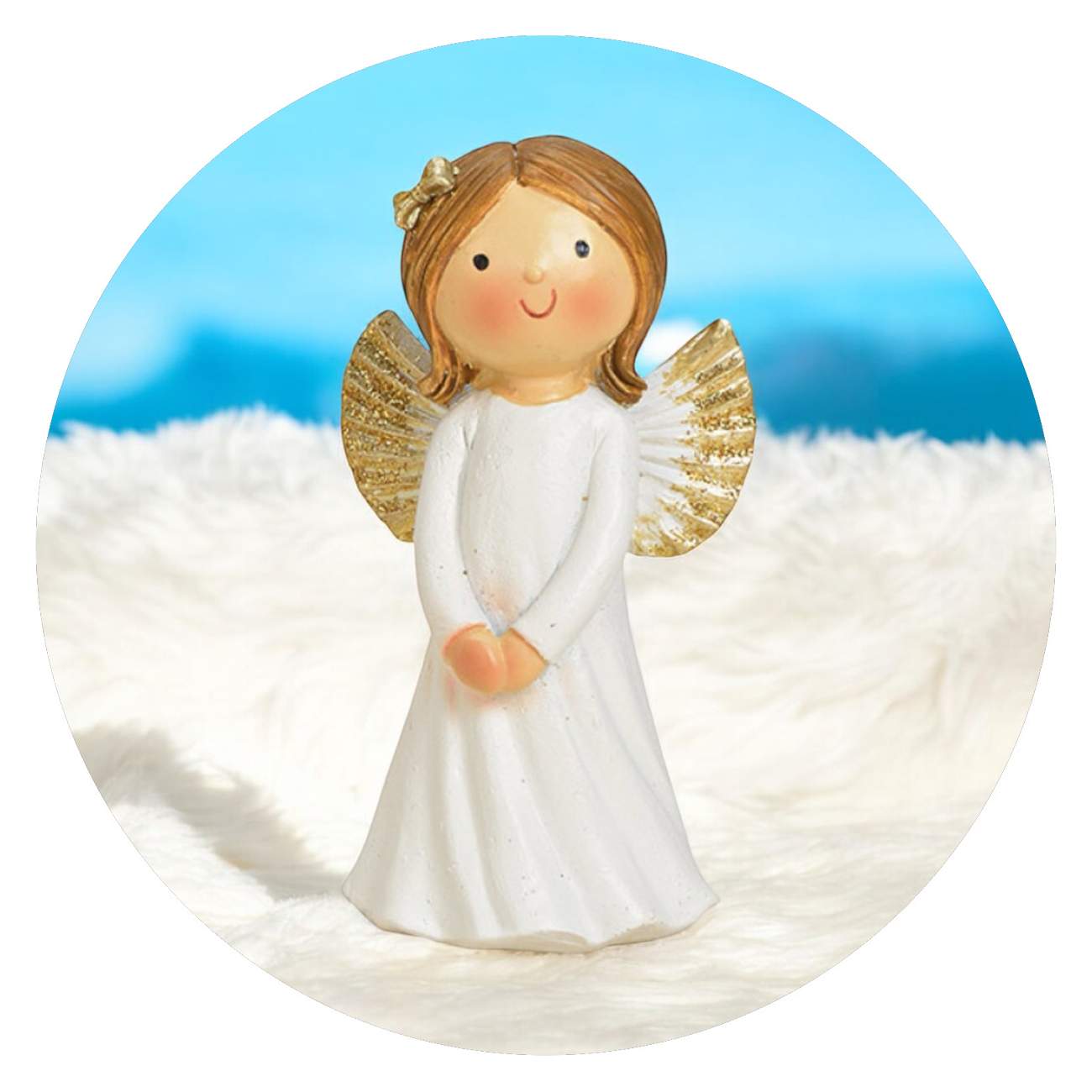 Ze zijn gewoon te schattig, deze engelenzusjes. Ze zijn gemaakt van sterk polyresin en geschilderd met gouden details, zoals het schattige strikje in hun haartjes en de randen van hun vleugeltjes. En ze zijn natuurlijk ontzettend lief. Ze staan glimlachend te kijken, alsof ze willen zeggen: Je doet het goed. Ik ben trots op je.