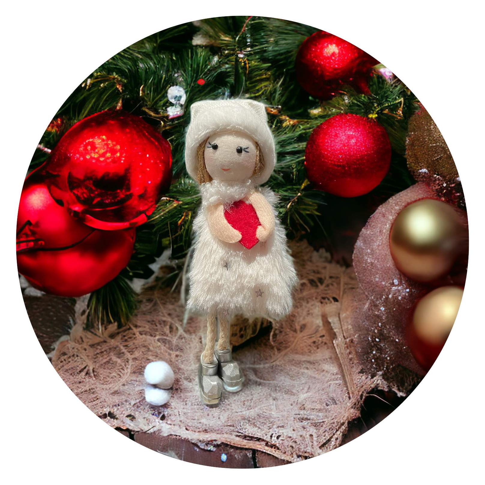 Aan haar witte mutsje zit een klein plastic lusje. Je kunt haar dus ergens aan hangen, bijvoorbeeld in je kerstboom, aan je autospiegel, maar ook aan de knop van je kledingkast of je spiegel, zodat je je elke dag gezien, gehoord en geliefd voelt.