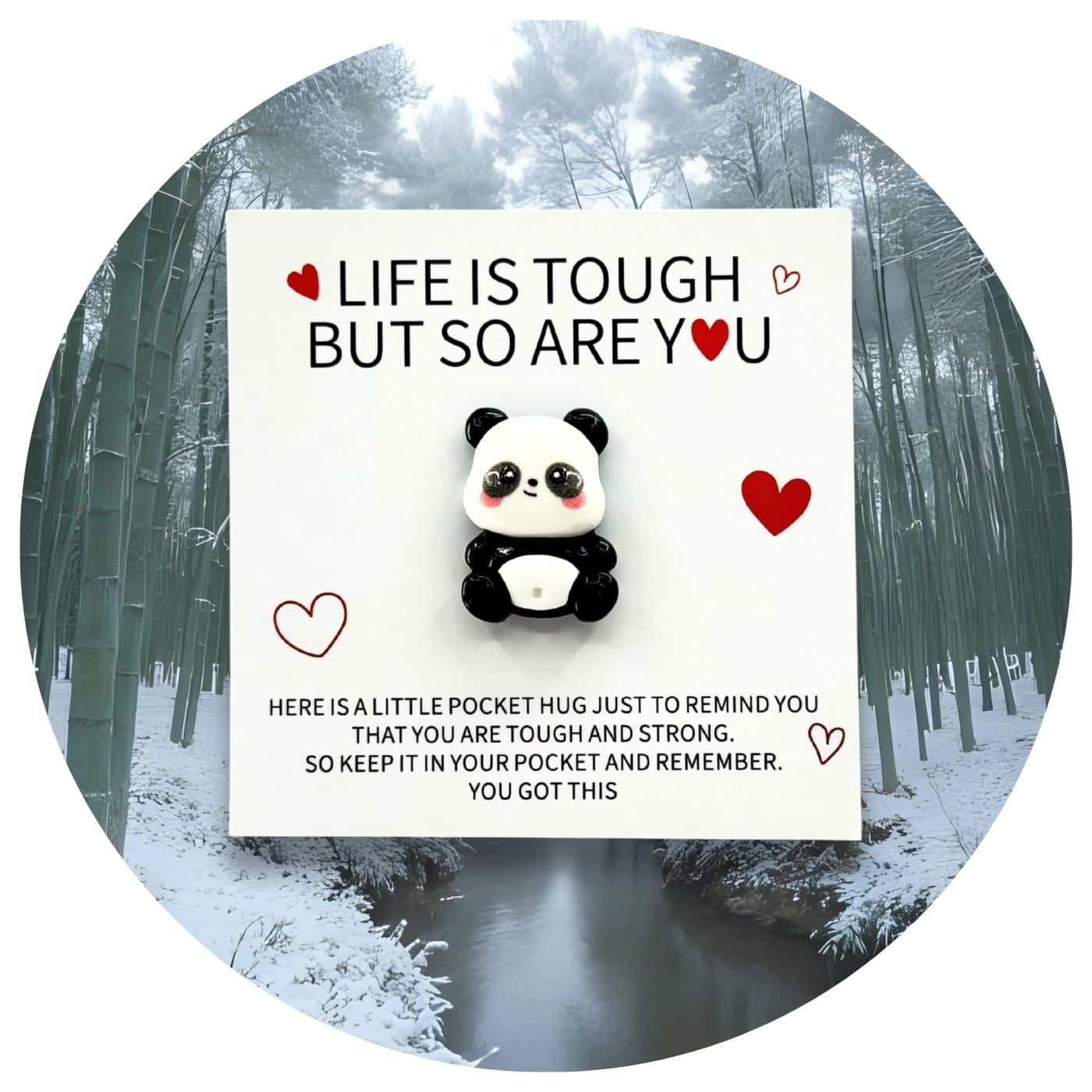De Pocket Hug panda bikkel is een klein knuffel-panda’tje om dicht bij je te houden en met een belangrijke boodschap: “jij bent een bikkel“. De panda kijkt je met zachte ogen aan en lijkt te zeggen: het leven kan best pittig zijn, maar jij kunt meer aan dan je denkt.