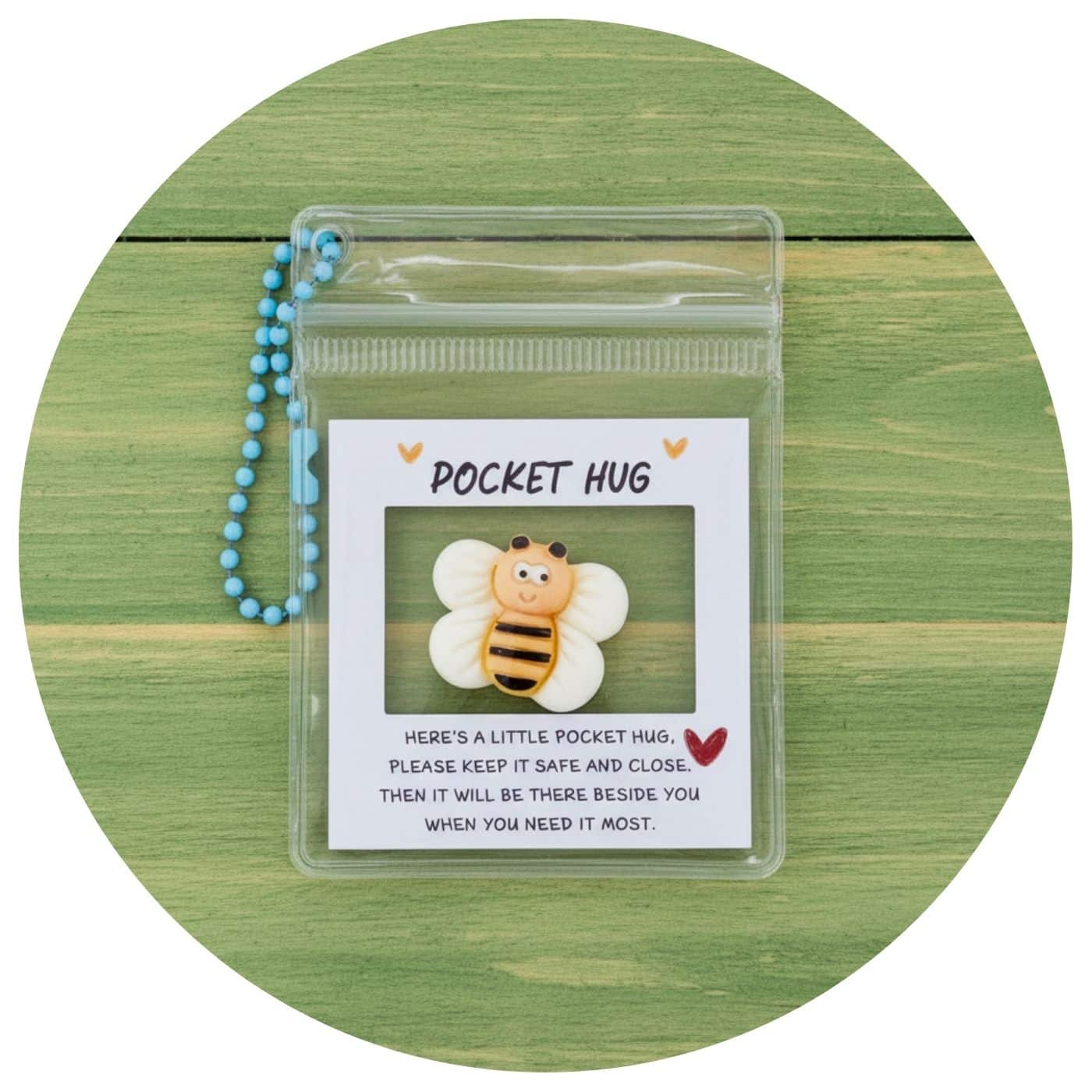 De bij staat voor samenwerking, hoop en het belang van kleine daden. Een weetje: een groot deel van groenten en fruit op tafel is te danken aan het harde werk van bijen. Deze Pocket Hug-bij mag herinneren dat zelfs de kleinste bijdrage verschil kan maken.
