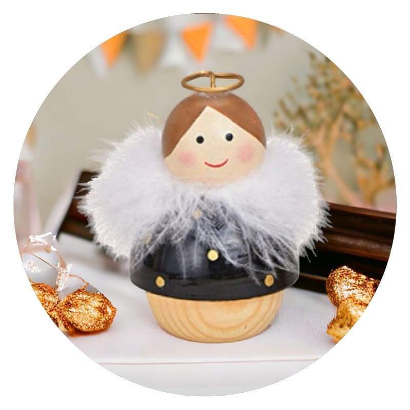 Ze hebben zachte donsveertjes als vleugels, een piepklein goudkleurig aureooltje en een houten bolhoofdje dat zachtjes glimlacht.