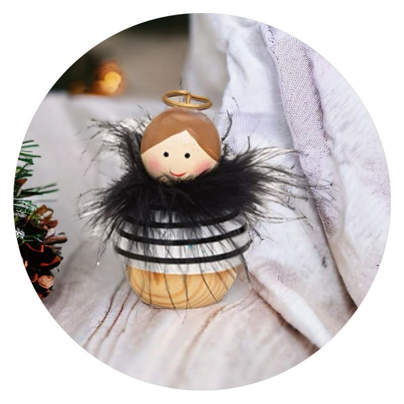 Ronde houten engel met veertjes