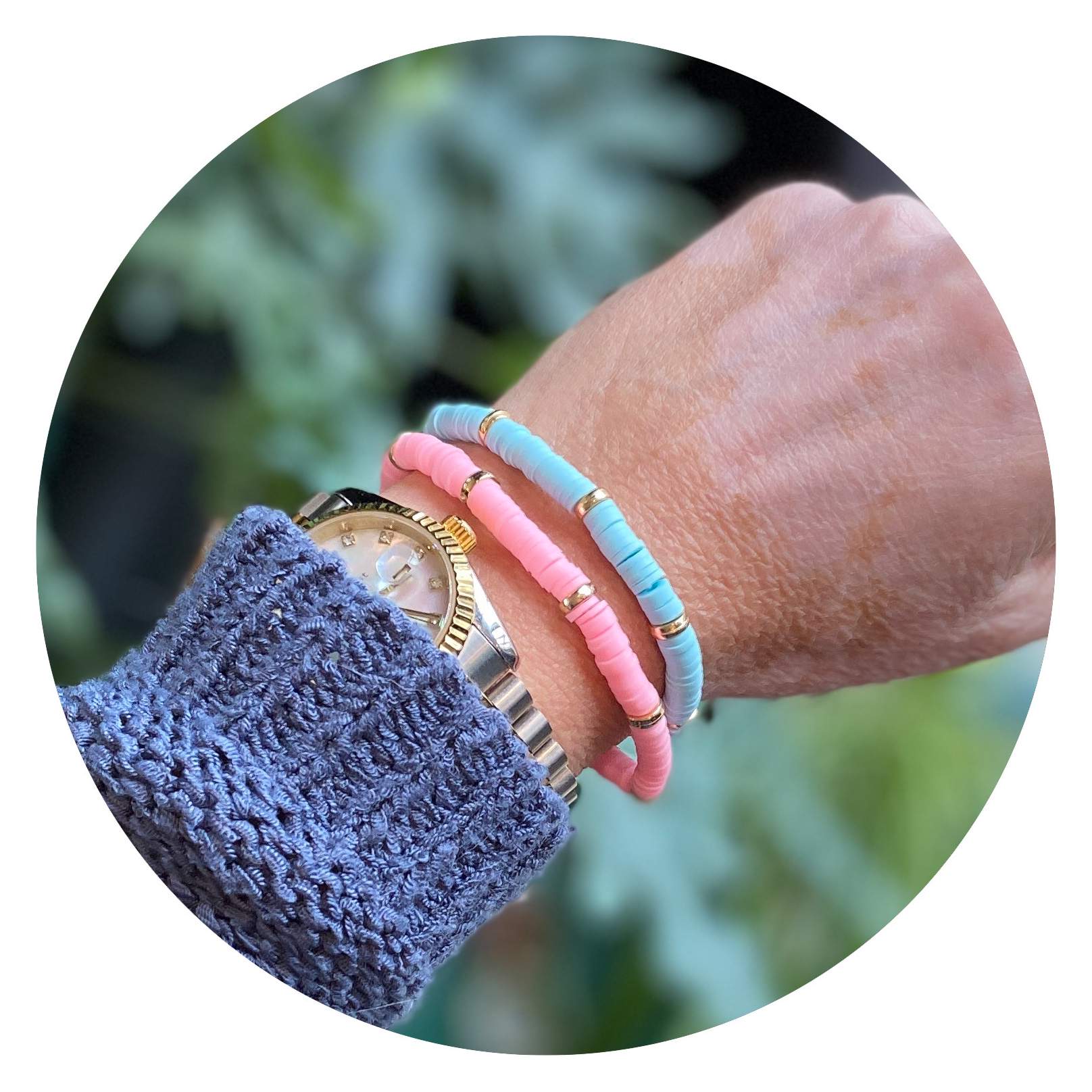 De gekleurde armbandjes zijn ook los verkrijgbaar zonder bedel.