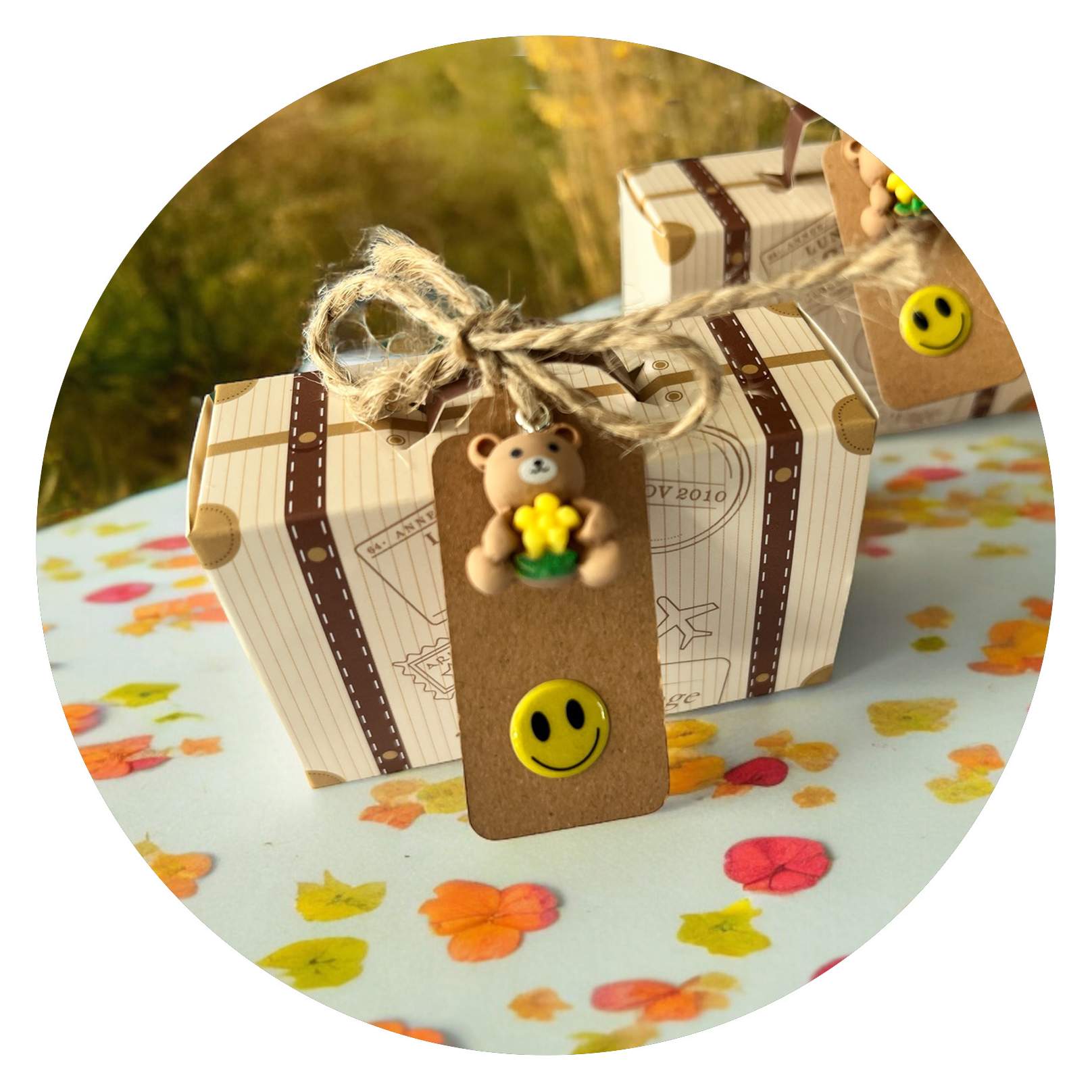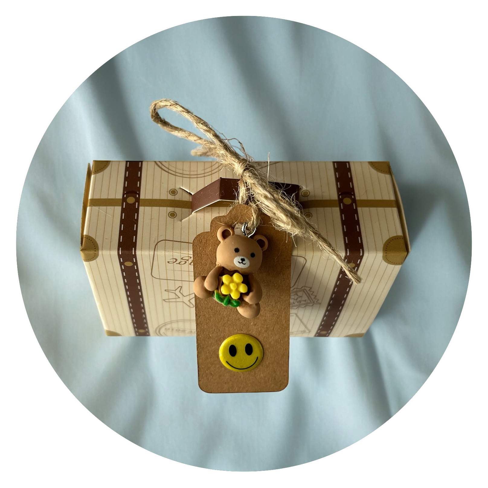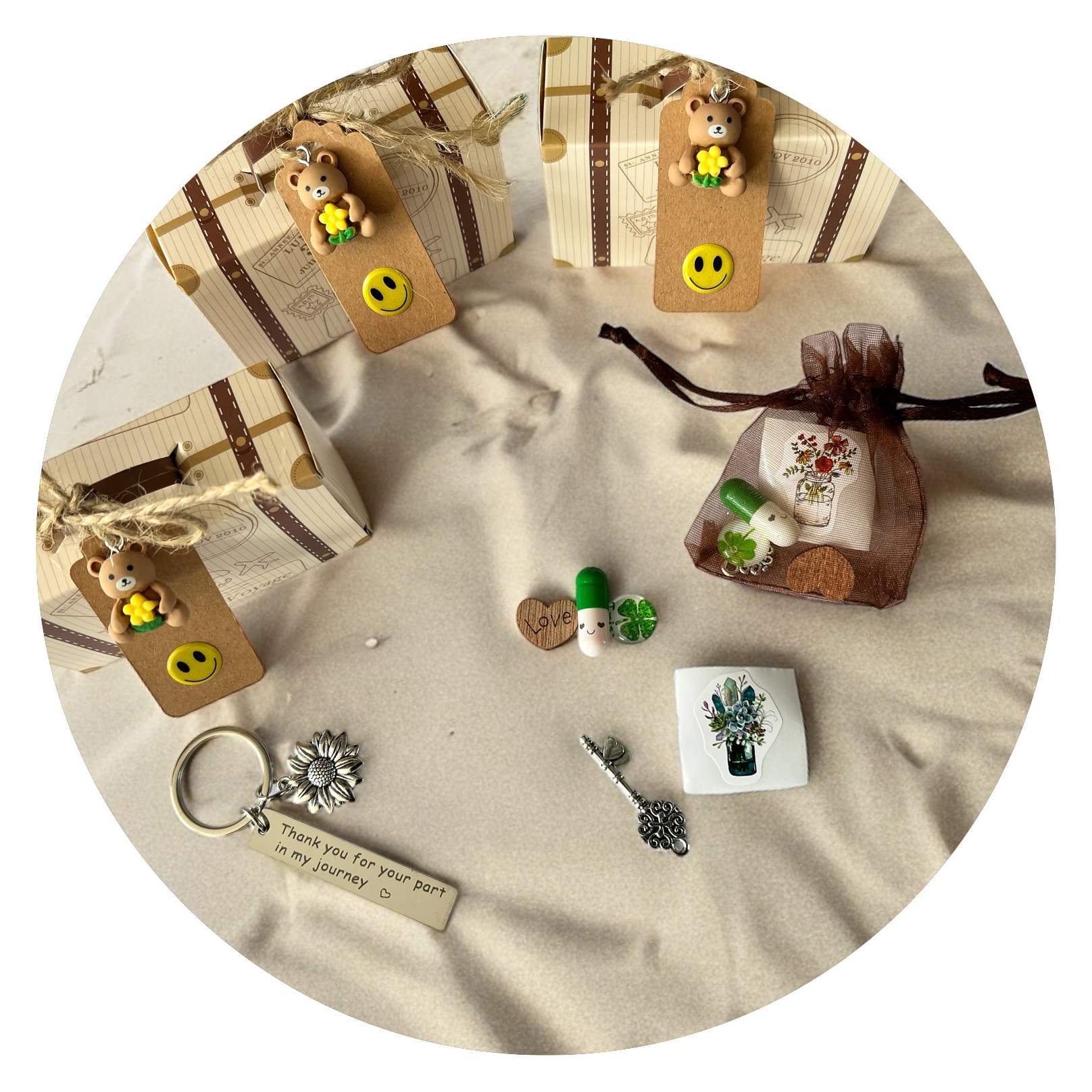 Het koffertje staat natuurlijk voor de reis die je hebt gemaakt. En dan bedoel ik niet per se een vakantie, maar meer de reis die je hebt gemaakt om te komen waar je nu bent. Je hebt hobbels en kuilen overwonnen, je hebt bergen beklommen en je door de meest lastige situaties weten te manoeuvreren. Daar mag je trots op zijn, maar we weten allebei dat jij nooit zover zou zijn gekomen zonder de hulp van die éne persoon. Diegene stond voor je klaar met raad en daad, steunde je, moedigde je aan, liet je uithuilen en motiveerde je door te zetten. Op de sleutelhanger die al ingepakt in dit koffertje zit, staat dan ook Thank you for your part in my journey.