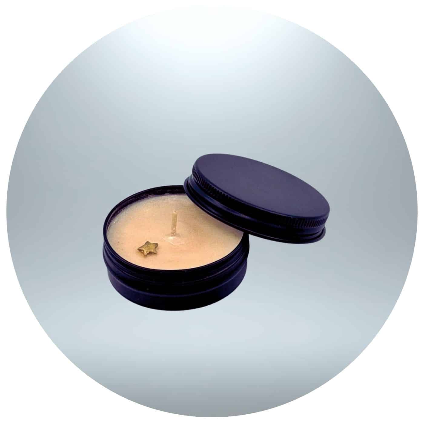 Een klein kaarsje in een blikje, met een goudkleurig sterretje. Het warme licht nodigt uit om even stil te staan, te ademen en te voelen dat er altijd ergens een ster voor je blijft stralen.