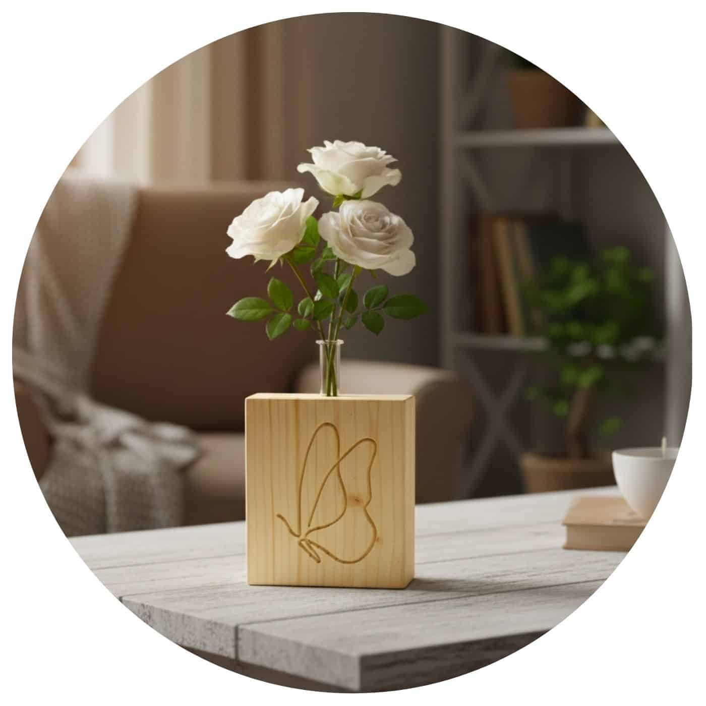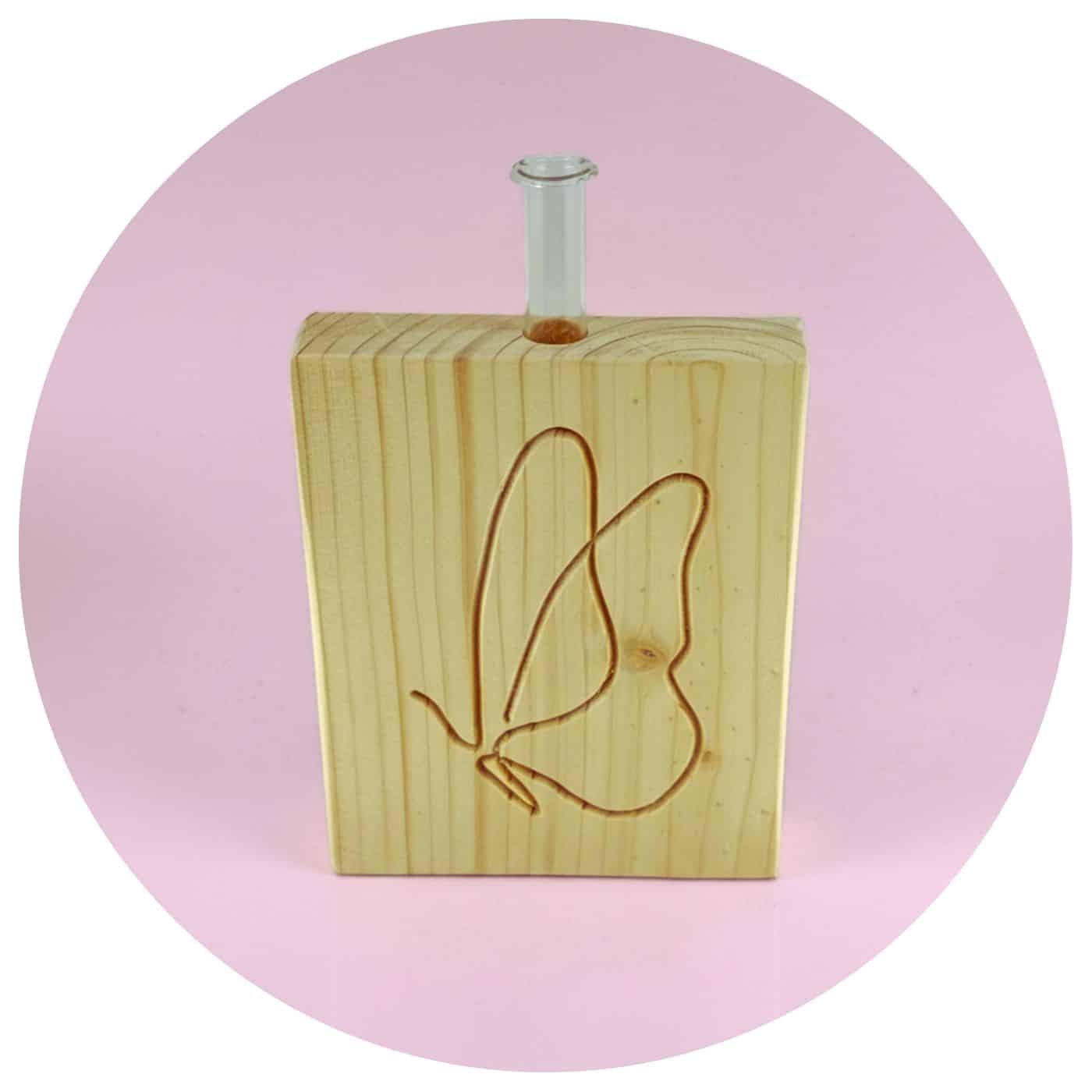 Houten Blok met Vlindergravure – Vaasje voor Troost & Groei