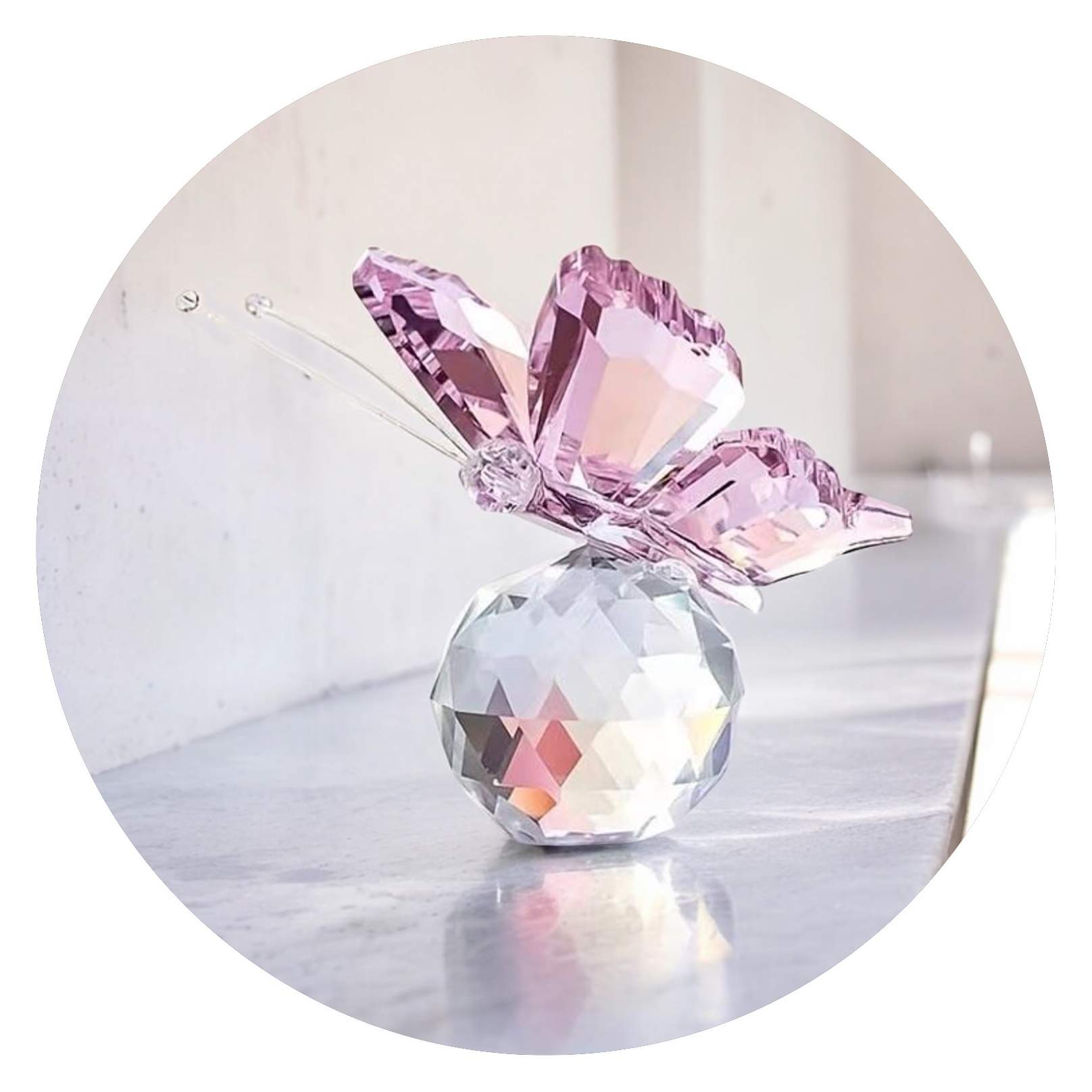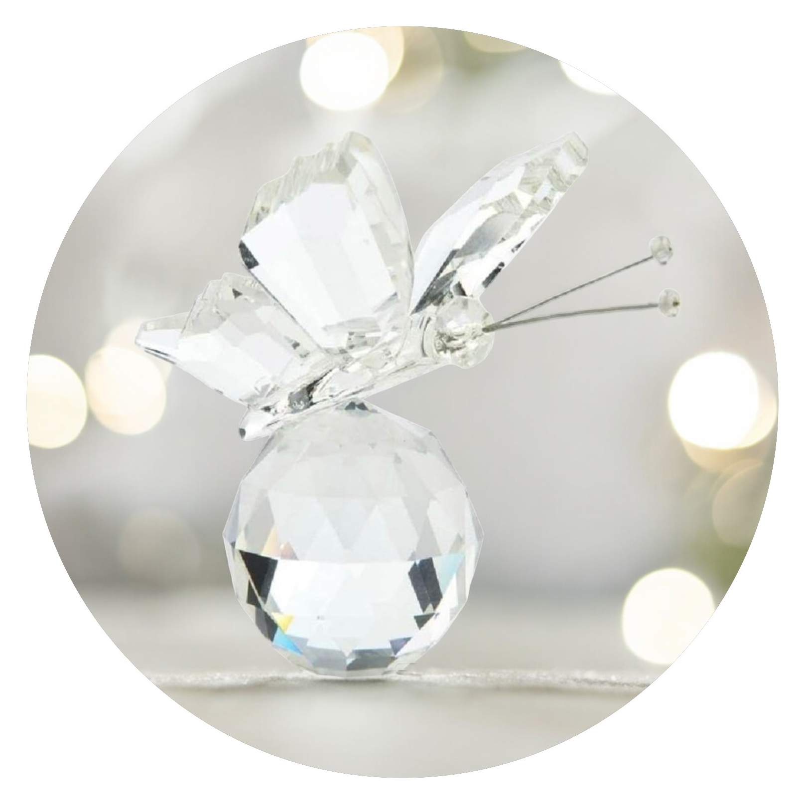 Deze transparante vlindertjes zijn er in twee uitvoeringen. We hebben volledig transparante vlindertjes, die het licht weerkaatsen zoals het binnenvalt, zittend op hun bolletje. En we hebben vlindertjes met een roze lijfje en vleugels, die ook een pracht lichtspel spelend, op een transparant bolletje zitten. Subtiel, delicaat en wonderschoon!
